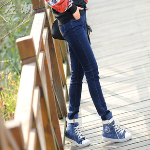 2015春款女式松緊腰牛仔褲女韓版修身顯瘦鉛筆褲大碼高腰小腳褲子 /