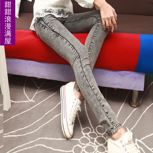 2014新款女裝E6731時尚修身顯瘦緊身包臀灰色牛仔小腳鉛筆長褲子 /
