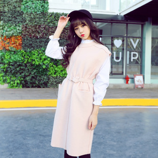 2015韓版女裝早春裝東大門時尚新款百搭無袖中長款毛呢連衣裙3198 /