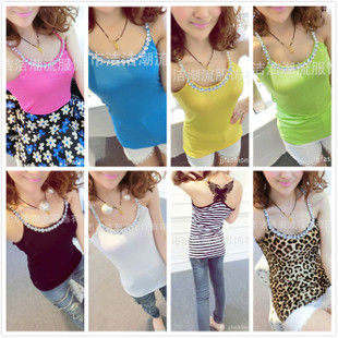 時尚韓版女裝2014春裝新款后背蝴蝶結設計時尚鉆領吊帶小背心 /