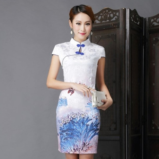 2014民族風新款時尚改良旗袍 女士短袖旗袍 收回旗袍裙 6632E /