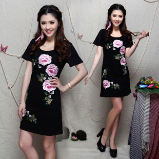 民族風 2014年新款刺繡圓領短袖連衣裙 女 修身顯瘦打底裙 8602A /