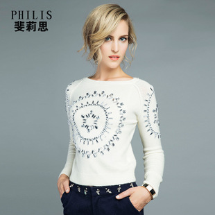 歐洲站2014秋裝新款大牌女裝手工鑲鉆長袖羊毛短款毛衣批發6505 /