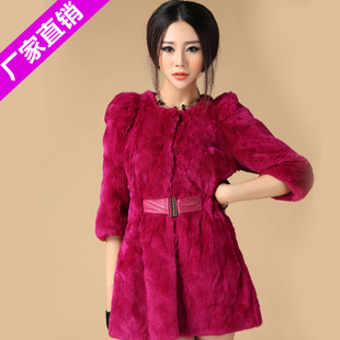 蘭詩嘉2014款韓版皮草外套毛中長款獺兔皮草外套配綿羊皮腰帶 /