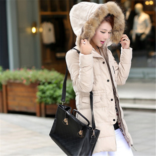 0342#2014韓版秋冬新款純色連帽羽絨服中長款修身收腰外套女裝熱 /