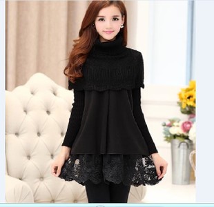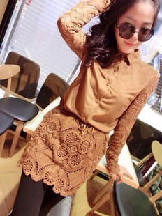 廠家批發(fā) 新款時尚韓國代購蕾絲加絨打底襯衫連衣裙 不退不換 /