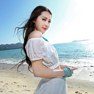 2015夏季新款波西米亞連衣裙 掛脖性感沙灘裙 牛奶絲冰絲連衣裙 /