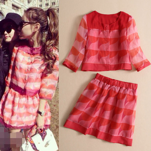 歐美2014春夏新款女裝 蛇蛇明星同款歐根紗幾何印花三件套S708 /