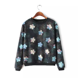 C0685 2014秋冬新款韓版女裝花朵圓領(lǐng)長袖寬松上衣毛呢衛(wèi)衣 /