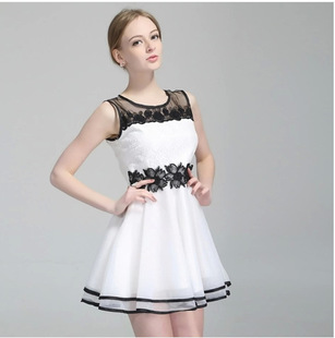 2015速賣通熱賣歐美鉤花刺繡女士晚禮服性感露背迷你蕾絲連衣裙 /