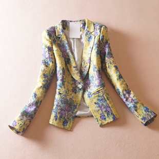簡介: 產地 北京 主圖來源 實拍無模特 貨源類別 現貨 風格 韓版 圖案 碎花 面料 棉類混紡 版型 修身型 衣長 普通款(50cm<衣長≤65cm) 領型 西裝領 衣門襟 一粒扣 袖長 長袖 袖型 常規袖 上市年份/季節 2014春季 顏色 黃色,綠色,藍色 尺碼 M,L,XL,XXL,XXXL