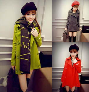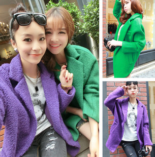 西裝領設計大衣2014冬季新款糖果色呢子中長款厚大衣 /