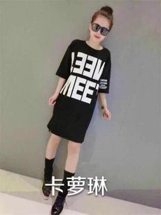 歐洲站最新時尚休閑字母圖案百搭連衣裙 /
