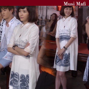 2015春新款何以笙簫默唐嫣趙默笙明星同款水墨印花寬松襯衫連衣裙 /
