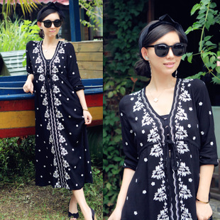 簡介: 建議零售價 ¥298.00 貨源類別 現貨 主圖來源 實拍有模特 風格 民族 圖案 純色 工藝 刺繡/繡花 是否庫存 是 貨號 808 產地 東莞 庫存類型 整單 款式 基本款 組合形式 單件 裙長 中裙 裙型 大擺型 領型 圓領 袖型 常規袖 袖長 九分 腰型 高腰 衣門襟 套頭 流行元素 拼接,刺繡 上市年份/季節 2014夏季 面料 雪紡 成分 棉 成分含量 31%-50% 顏色 黑色 尺碼 S,M,L,XL 適合季節 夏季,秋季