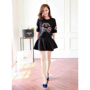 簡介: 貨源類別 現貨 主圖來源 實拍有模特 風格 名媛 圖案 花朵 工藝 手工釘珠 面料名稱 針織 面料主材質分類 合成纖維 面料主材質 絲光棉 面料主材質含量 71%-80% 面料次要材質分類 合成纖維 面料次要材質 彈力絲 面料次要材質含量 71%-80% 是否庫存 是 產地 東莞 庫存類型 整單 款式 基本款 組合形式 兩件套 裙長 短裙 裙型 大擺型 領型 圓領 袖型 常規袖 袖長 五分袖/中袖 腰型 高腰 衣門襟 套頭 流行元素 拼接,立體裝飾,撞色,釘珠 上市年份/季節 2015春季 面料 其他面料 成分 棉 成分含量 81-90% 顏色 黑色,藍色 尺碼 均碼