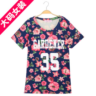 2015夏裝新款女裝韓版碎花英文印圖T恤修身花色長款大碼上衣A0563 /