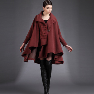 2014秋冬雙面羊絨長款毛呢大碼大衣 民族風外套 一粒扣大盤扣 /