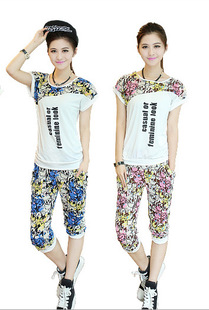 誠招女裝品牌代理 2015新款韓版格子短袖七分褲運動服 一件代發 /