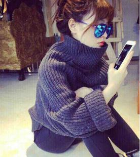 14秋冬 明星同款歐美慵懶寬松羊毛堆堆領(lǐng)蝙蝠袖寬松高領(lǐng)毛衣 /