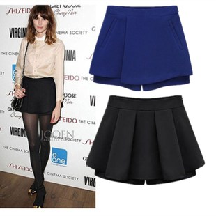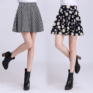 2015春夏新款大碼高腰短褲裙女防走光半身裙百褶太陽裙碎花短裙子 /