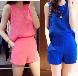 夏天連體衣服韓版大碼女裝胖MM顯瘦修身連身褲女雪紡連體短褲套裝 /