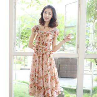 2015夏裝新款 經(jīng)典氣質(zhì)修身顯瘦中長(zhǎng)款短袖印花連衣裙 /