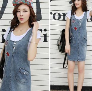 牛仔背帶裙女2015新款潮百搭牛仔裙夏季韓版吊帶裙牛仔連衣裙 /