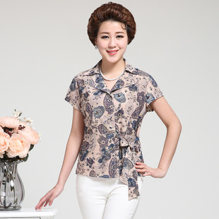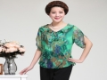 廠家直供中老年女裝夏裝中年女裝印花短袖中年女裝大碼雪紡衫 /