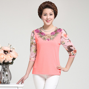 廠家直供 中老年女裝夏裝T恤印女裝大碼雪紡衫短袖媽媽裝 /