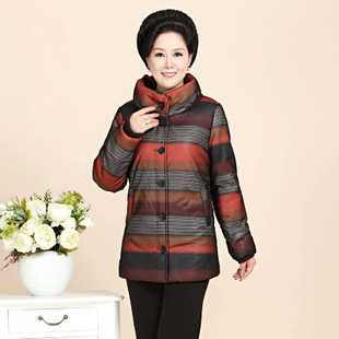 新款冬裝中老年休閑棉衣媽媽裝保暖外套時尚立領(lǐng)橫條紋大碼大版型 /