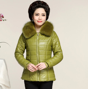 新款中老年冬季皮質(zhì)棉衣 時尚女裝修身棉服 可脫卸毛領(lǐng)保暖媽媽裝 /
