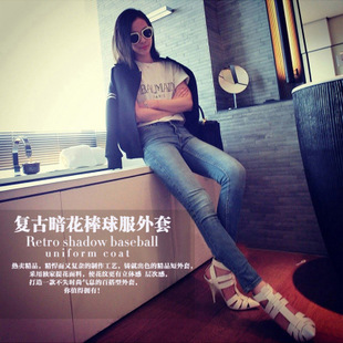 【伊思沛】2015復古暗花 棒球外套 女棒球服 黑白色小外套 休閑 /