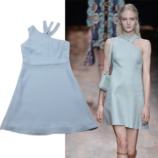 現貨 華倫家走秀斜肩領口交叉獨特設計修身顯瘦淺藍色連衣裙 /