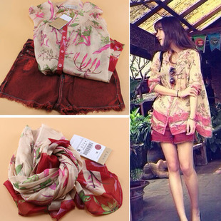 現貨 嗆口小辣椒1月19日泰國游zara碎花大花雪紡冰絲開衫防曬衫 /