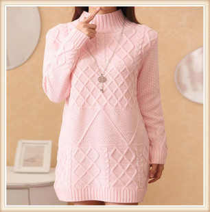 2015春夏新款毛衣女長袖半高領韓版麻花加厚中長款針織衫打底外套 /