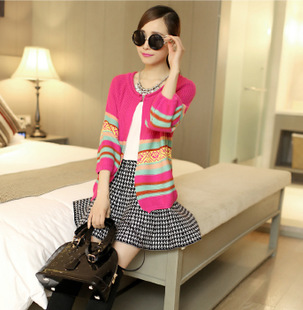 簡介: 建議零售價 ¥198.00 產地 吳江橫扇 品牌 靚韻爾 主圖來源 實拍有模特 貨源類別 現貨 是否庫存 是 風格 韓版 圖案 條紋 毛種類 棉類 毛衫工藝 針織 厚薄 適中 款式 開衫 組合形式 單件套 版型 寬松型 衣長 普通款(50cm<衣長≤65cm) 袖長 九分 袖型 常規袖 上市年份/季節 2015春季 顏色 黑色,玫紅,米色 尺碼 均碼