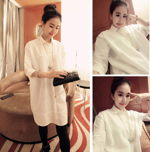 • 2015春裝新款女韓版寬松鏤空白色襯衣長(zhǎng)袖中長(zhǎng)款襯衫 /