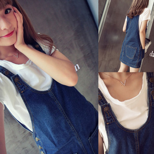 • 2015早春新款韓國(guó)寬松顯瘦潮口袋牛仔背帶裙女 /