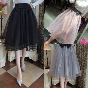 • 新款時(shí)尚氣質(zhì)高腰蝴蝶結(jié)歐根紗蓬蓬半身裙中長(zhǎng)款百搭半身長(zhǎng)裙 /