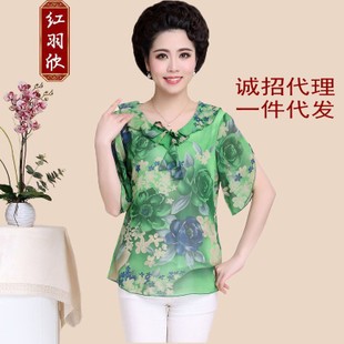 母親節(jié)中老年夏裝媽媽裝大碼雪紡衫套頭T恤時尚中年寬松短袖t恤女 /