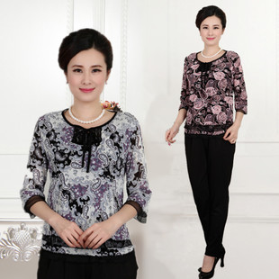 2015夏裝新款中老年女裝T恤媽媽裝寬松大碼短袖雪紡衫 /