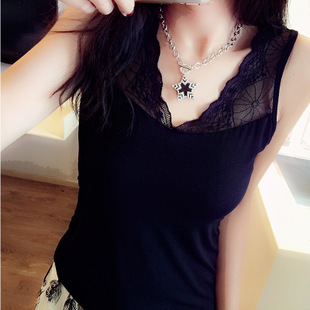 大碼女裝早秋新款蕾絲邊百搭打底背心200斤胖mmV領鏤空小吊帶女 /