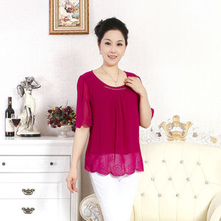 原創(chuàng)設計 新款夏季中老年女裝雪紡衫中年寬松大碼媽媽裝短袖 /