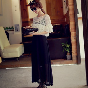 2015新款蕾絲鏤空鉤花罩衫+雪紡吊帶長裙連衣裙兩件套裝 /