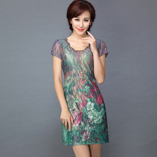 2015夏季新款 紫色 優雅蕾絲連衣裙中年時尚媽媽裝 一件代發5112 /