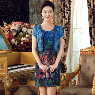 2015夏季中年氣質兩件套無袖背心修身蕾絲連衣裙大碼顯瘦女裝批發 /
