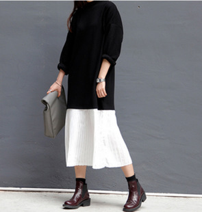 趙成蘭 2015春寬松高領衛衣拼接雪紡百褶裙連衣裙 /
