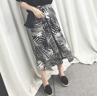 2015東大門春夏樹葉印花雪紡寬松九分闊腿褲 /