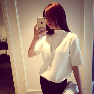 2015春季新款高領純色氣質百搭寬松短袖針織衫打底衫女 /
